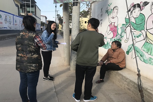 清晨,志愿者们来到了揉谷镇田西村,开始仔细深入地向农户了解情况。志愿者们挨家挨户进行访谈,对农户的畜牧养殖及农业生产分布现状进行了具体而全面的记录。在访问过程中,志愿者们发现,农户种植的作物种类较为单一,几乎全是红薯,并且规模较小,既没有发展成机械化种植,也没有进行统一耕种,只是在河边滩地上人工种植几亩红薯,最多不过在自家门前种植一些蔬菜以满足家用。而在畜牧养殖方面,全村还没有家庭农场,也仅仅有几户散户自养着一两头肉猪,而且多数是留以自用。志愿者们了解了情况后,向农户们普及了国家对于农业生产及畜牧养殖业的相关扶持政策,并建议农户们应当结合相关政策,重点把种植业和畜牧业发展起来。在了解相关政策后,村民们纷纷表示自己受益良多,村中的一位老人表示:志愿者们的讲解,使我们对国家的扶持政策更加了解,感谢国家对农民的关怀和帮助,也十分感谢西北农林科技大学的志愿者们能够深入基层农村向农户们普及国家对于农业生产及畜牧养殖业的相关扶持政策。