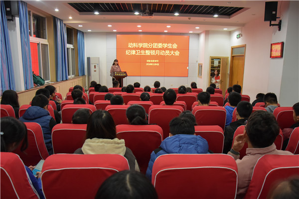 纪律卫生整顿月是宅宅爱动漫 的优良传统,旨在通过检查整顿,规范新生在学习生活以及纪律方面的行为习惯。为了更好地迎接纪律卫生整顿月,让同学们熟悉纪检部、生活部、学习部本月的工作条例与要求,共同努力完成为期一个月的整顿工作,11月4日晚,我院于动科楼107会议室举行了纪律卫生整顿月动员大会。宅宅爱动漫 分团委常务副书记韩梦璇出席并做了动员,纪检部、生活部及学习部部长分别细致讲解了相关纪律卫生整顿月的具体要求和注意事项。