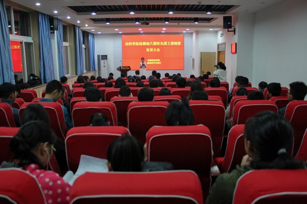 最后,勤工外联部孙琛讲解了阳光团员管理制度。他首先介绍阳光团工委的组织构成、职务及责任,和阳光团员的具体任务。之后,他详细讲述阳光团员课时制度及奖惩办法,明确了阳光团员们在为社会做出不同贡献时应受的奖励及警戒。