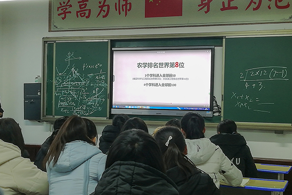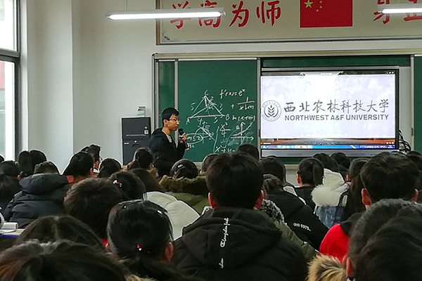 宣讲伊始,队长首先播放了一段快闪视频,从学校定位、师资力量、学科特色、科研实力、人才培养体系、招生政策等方面全面呈现了宅宅爱动漫 的魅力与实力,点燃了全场氛围,同学们纷纷赞叹不已。之后,其他队员通过发放宣传手册和纪念品,再结合PPT演讲,多层次,多方位地介绍了西北农林科技大学的各方面信息。副校长观看了视频后赞叹道:“经国本,解民生,尚科学,这不仅是西农的精神,更应该是每个高校义不容辞的担当,西农人走在了时代的前沿。”