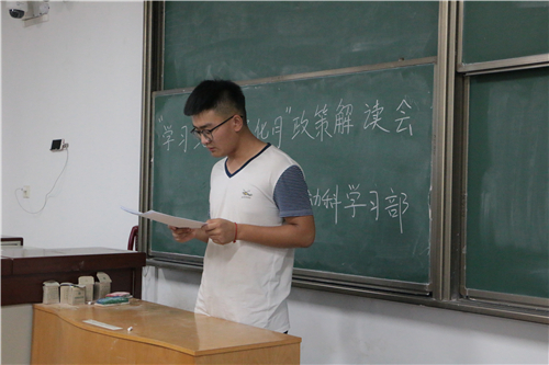 解读会上,耿慧君,赵冬玥等同学宣读了各项文件,组织学生重点学习《西北农林科技大学关于进一步加强大学生学风建设的实施意见》、《西北农林科技大学本科生学籍管理办法》和《西北农林科技大学教学区学生文明行为规范》,特别是学籍管理办法中关于学习考核与成绩记载的相关内容,加强政策解读及宣传,确保学生能了解并熟知政策变化及影响。