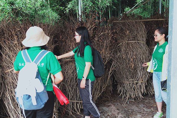 接着,队员们对不同农户进行了调研,不仅了解到人工养蜂的方法过程以及出售土蜂蜜所获得的成果,还对农户自产自销白果的方式做了调查,同时得知有的农户种植葡萄玉簪花以增加绿化吸引观光,大部分农户重点发展种植杨桃和蒲公英,并以其为中草药,还有油菜田,益母草等特色经济种物。