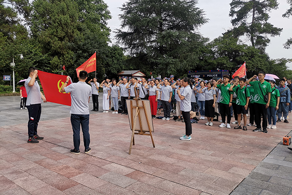 本次调研的第一站是遵义,遵义是一座转折之城、会议之城,在中国革命史上有着举足轻重的位置,在历史的教科书中永远有它的一页。遵义红色文化广泛根治于人民的心中,遵义市人民对红色文化有着忠诚的信仰。当天下午,调研队来到红军山,参观红军烈士纪念碑并缅怀先烈,了解邓萍将军的英勇事迹,邓萍将军不怕牺牲,维护革命利益的大无畏精神给队员们留下了深刻的印象。寻着历史的踪迹,调研队继续探寻红军坟背后的故事,年轻勇敢,医术精湛的小红军龙思泉在革命中壮烈牺牲,得到了群众的拥护,群众自发为龙思泉修建墓碑,把他当做红军“菩萨”来祭拜,并为了保护墓碑与反动派斗智斗勇。祭拜红军的传统在当地一直保留了下来,队员们为这样悲壮的故事感到心潮澎湃在并充分感受到了遵义市人民对红色文化的重视和热情。他们的热情鼓舞和教育让队员们对红色文化有了更深刻的了解和认识。