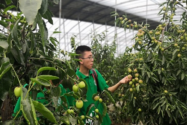 队员观察园区内冬枣生长情况