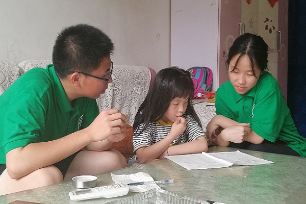 由于7月19日下雨过大,经过一天的修整之后,队员们走出宾馆,于20日、21日开展了为期两天的支教活动。在一系列轻松有趣的活动过后,队员们成功与当地孩子们建立了深厚的友谊。在支教过程中,队员们耐心的辅导使得孩子们很快理解了作业中遇到的难题,也帮助孩子们在快乐的氛围中完成功课,让他们理解到了学习的乐趣。