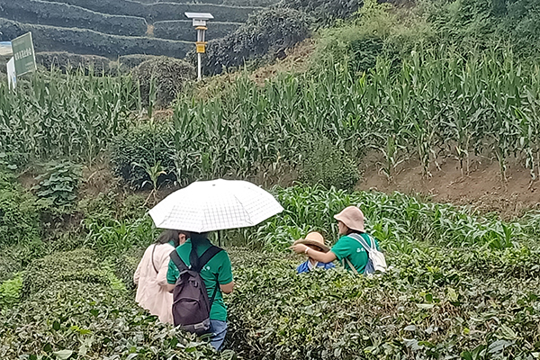 和茶园工作人员交流