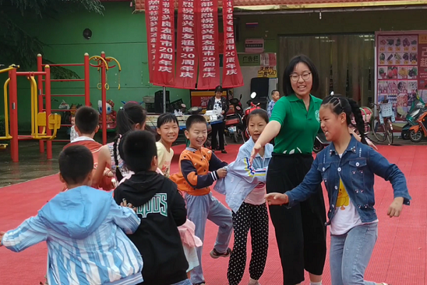 队员们带领孩子们做游戏