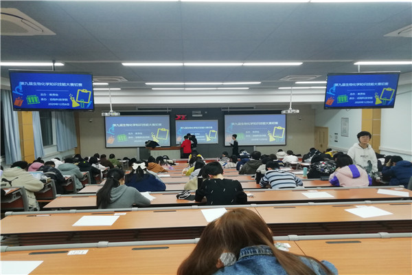 为了考察学生们对生化技能的了解,由教务处主办、动科宅宅爱动漫 承办的第九届生物化学知识技能大赛初赛于2020年12月6日下午七点半在八号教学楼阶梯教室举办,此次比赛是首次采用手机考试的形式,形式新颖。