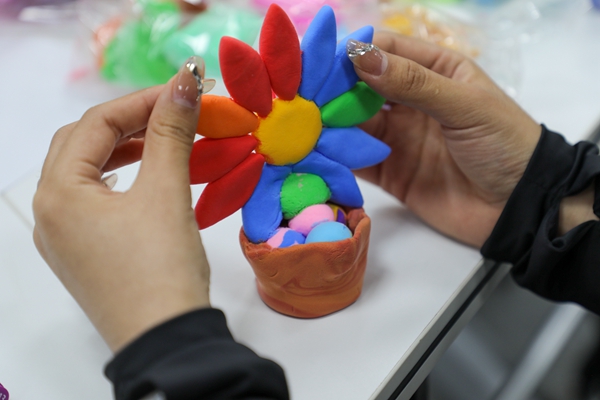 座谈会伊始,老师通过一系列具有趣味性的心理小游戏帮助学生缓解了学习和生活中的压力。在随后的粘土制作环节,通过用轻粘土将学生内心的情感转化为可视化的艺术作品,从而使他们的情绪得到宣泄和放松,更加深入地了解自己的内心世界,增强自我认知和心理成长。