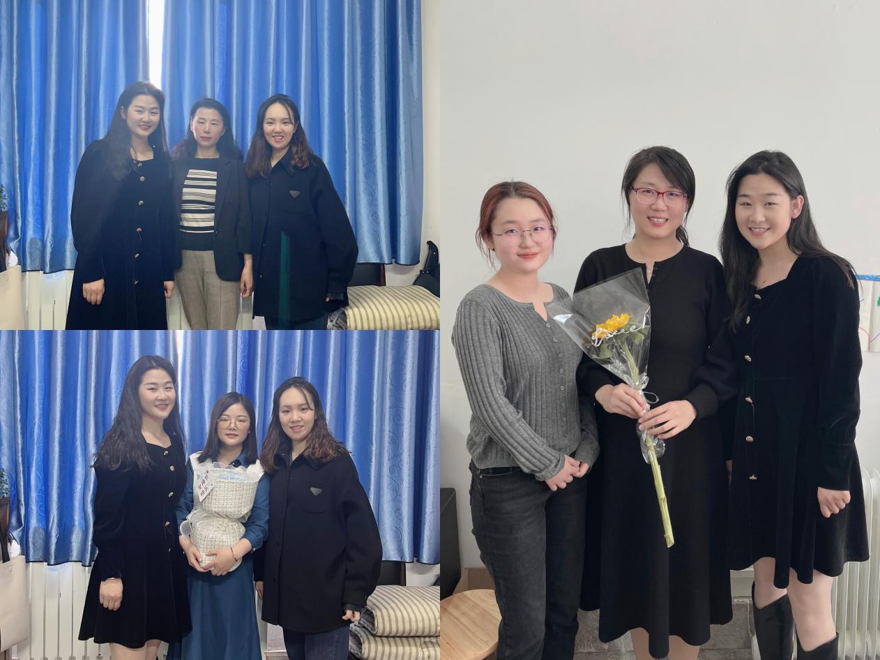 首先,由支部书记白军霞、组织委员赵柯靓以及陈婕作为代表为课题组女老师送上鲜花和节日祝福。