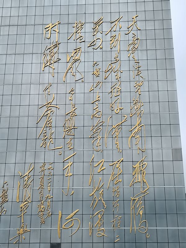 “天高云淡,望断南飞雁。不到长城非好汉,屈指行程二万。六盘山上高峰,红旗漫卷西风。今日长缨在手,何时缚住苍龙?”