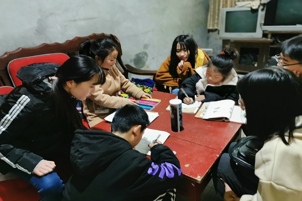 上午九点,志愿者全体成员抵达寨东村,并且在社会实践部刘瑞同学,岳阳同学和王文涛同学的组织下,各位志愿者到孩子的家中进行辅导。孩子们在各自家中,耐心等待支教志愿者的到来,孩子们眼含笑意,对志愿者的到来欢欣不已,让支教志愿者们体会到来自孩子们的温暖。之后,在志愿者对孩子们的辅导交流的过程中,双方逐渐熟悉彼此,随着孩子们与志愿者们的交流越来越多,每个孩子都熟悉并且喜欢自己的“老师”。当孩子们做完自己的家庭作业之后,为了让孩子们劳逸结合,便于志愿者们与孩子们的关系增进,志愿者们便与孩子们做游戏,一起看课外读物。