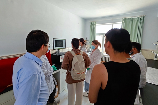 随后调研团成员来到生活区的冻精加工生产与品质分析实验室进行参观。内蒙农大动科宅宅爱动漫 动物遗传育种与繁殖系,在绵羊、山羊冷冻精液生产加工、保存使用等领域深耕多年,在冷冻条件、稀释液配方、输精技术等方面取得诸多成就,先后尝试在稀释液中添加海藻糖、大豆卵磷脂、褪黑素等用于提升精子活力,解冻后精液活力可达70%以上。现已构建成采精-制管-冻存-复苏-输精全套技术体系,并在自治区进行产业化推广。内蒙农大科研助理徐冰冰老师,向队员展示了冷冻精液复苏和品质鉴定全过程。队员对冷冻精液相关设备操作和技术要点进行系统学习,对冷冻精液技术发展有了更加清晰的认识,明确了学科使命。