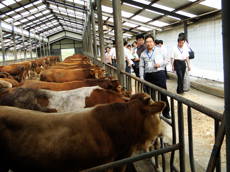 会议期间,昝林森教授和其他与会领导和专家在实地考察调研了江麒源泉牧业有限公司繁育的“日本和牛”、穆棱镇柳毛河村的“弗莱维赫杂交后代”、福兴肉用种牛繁育场的“西门塔尔牛基础母牛”以及龙江皓月肉牛屠宰加工厂等肉牛养殖加工基地后,还应邀出席了“穆棱市肉牛产业发展专家恳谈会”,并就当地肉牛改良的技术路线和产业发展方向等进行了针对性地解答。