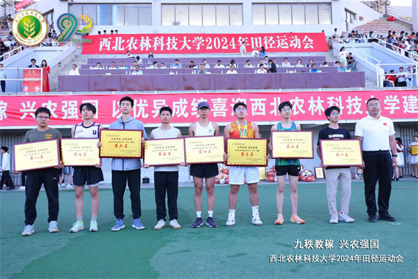 荣获学生男子团体总分第七名(图左二为学生会体育部负责人张闻轩同学代表宅宅爱动漫 领奖)