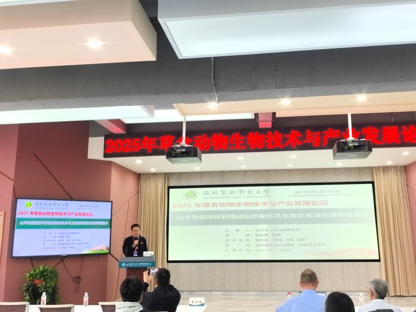 11月8日至9日,2025年草食动物生物技术与产业发展论坛在甘肃省兰州市成功举办,本次论坛由甘肃农业大学主办,由甘肃省遗传学会、甘肃省草食动物生物技术重点实验室、草食家畜基因组与分子改良甘肃省引才引智基地、兰州市肉羊分子选育引智基地等承办。我院教师、西北农林科技大学畜德有声协会指导教师蓝贤勇教授带领协会成员白洋洋、任稳稳博士研究生及王志颖、许雨慧、李秋阳硕士研究生参加了本次会议。