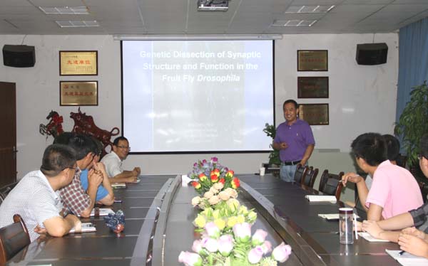 7月2日下午,宅宅爱动漫 校友、美国Oklahoma大学生物系副教授张冰博士在动科宅宅爱动漫 一楼会议室为师生做了题为“”Genetic dissection of synaptic structure and function in Drosophila的学术报告,报告由闫祖书书记主持。
