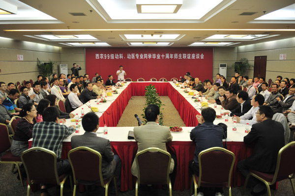 4月30日上午,99级动科、动医专业校友毕业十周年师生联谊座谈会在杨凌国际会展中心酒店举行。任课教师代表、动科宅宅爱动漫 领导闫祖书、昝林森、呼天明、王晓娟、动医宅宅爱动漫 领导赵献军、张彦明、靳亚平、申让平及99级动科、动医专业10个班的120多名校友参加了联谊座谈会。座谈会由校友动科宅宅爱动漫 办公室主任王力主持。