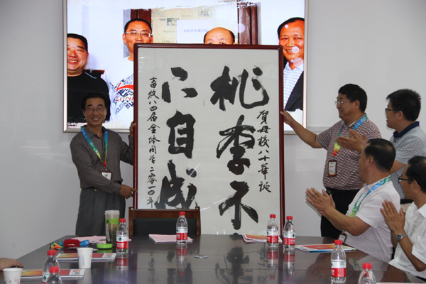 校友代表丑新友在会上作了发言,代表大家感谢母校老师的精心培养,祝愿母校发展蒸蒸日上,祝愿母校老师身体健康、生活愉快。校友们还向宅宅爱动漫 赠送了纪念品。