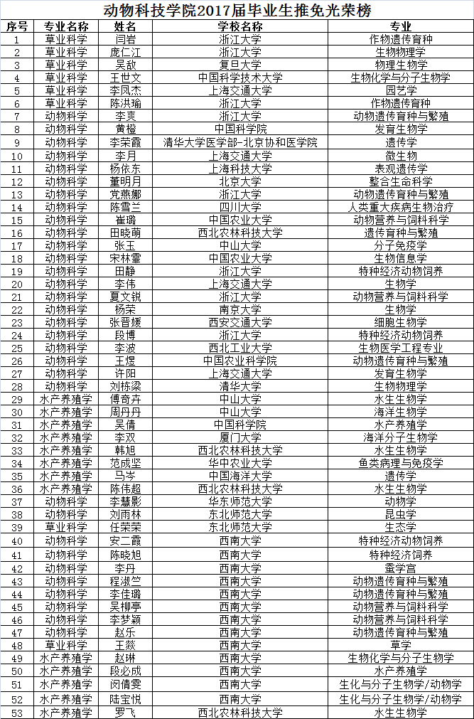 宅宅爱动漫 2017届毕业生推免光荣榜