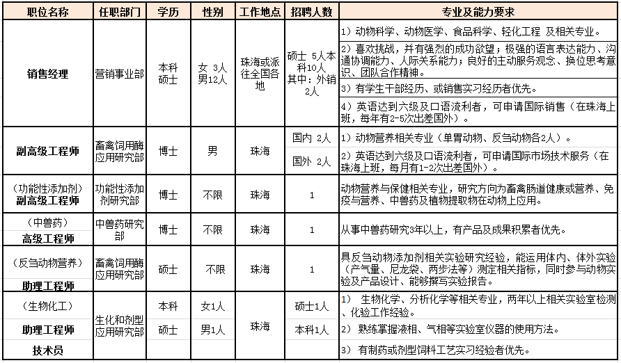 公司在现有的四大工业园区均设有研发中心,集中了国内该领域最优秀的科研人才。其中,珠海研发技术中心:现有来自国内外的博士12人、硕士43人及一批重点大学本科生,设有基因工程发酵研究部、功能性添加剂研究部、畜禽饲用酶应用研究部、水产饲用酶应用研究部、生化和剂型应用研究部、工业酶应用研究部、产学研科技管理部、动物实验基地等,现有的固体发酵技术、液体发酵技术、复合酶协同技术、制剂剂型技术、饲用酶产品应用技术、造纸酶产品应用技术等处于国内领先水平。
