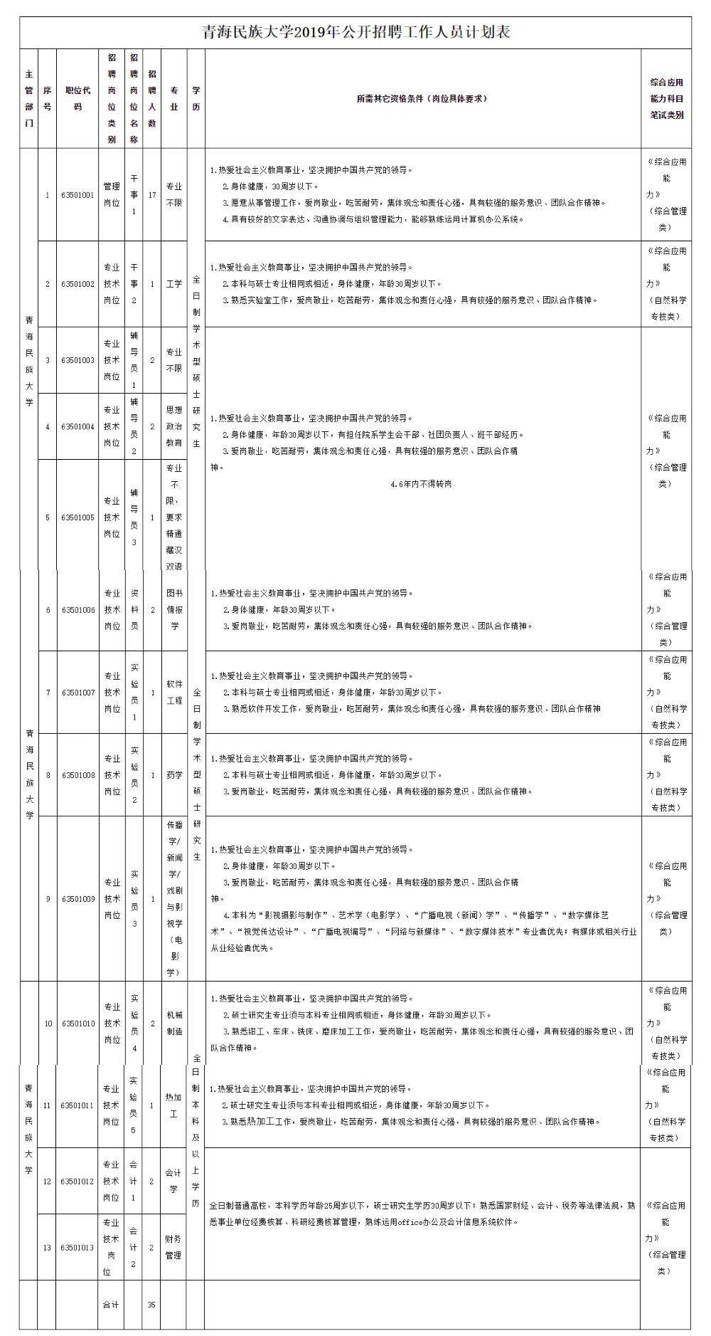 附件: 1.青海民族大学2019年公开招聘工作人员计划表