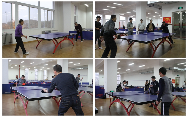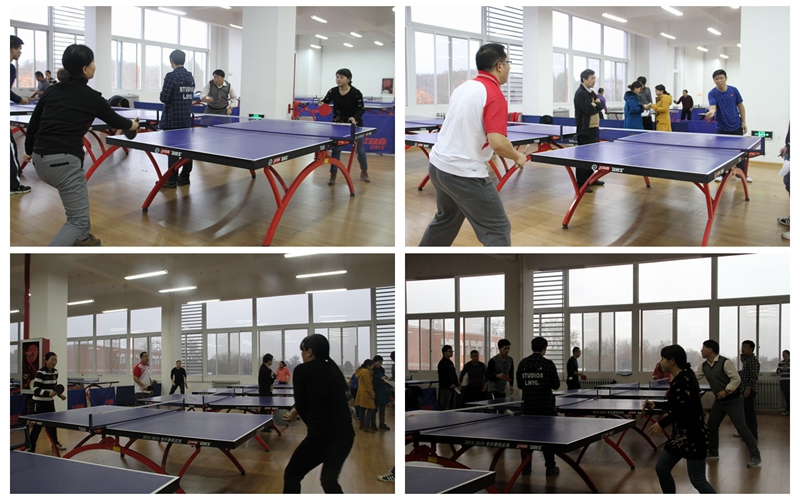 比赛完全采取打单的方式进行,按照教工报名的项目,随机抽签,各分成男子4个组,女子2两个组,每组选定种子选手,小组赛3局2胜,淘汰赛5局3胜。小组第一轮循环赛,每小组选出前2名,种子队员不参赛;第二轮比赛,每组第一名固定,第二名随机抽取各组第一名进行比赛,败者直接淘,种子仍不参赛;第三轮比赛,种子选手固定,第二轮的获胜者抽取种子选手进行比赛,败者直接淘汰;进入第四轮的选手,采取循环赛制,根据胜负场次依次选出冠亚季军。
