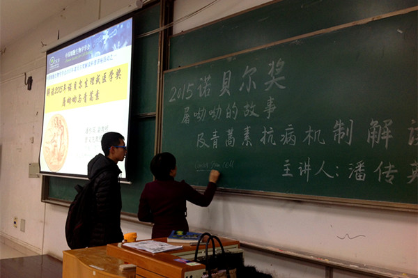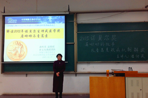 为丰富我院本科新生的科学文化知识,提升科学素养,弘扬科学知识,传播科学思想。11月27日,曾文先教授团队骨干成员、硕士研究生导师潘传英副教授在北校区8T02阶梯教室为我院240余名2015级本科生做了一场题为“解读2015年诺贝尔生理医学奖:屠呦呦与青蒿素”的精彩讲座。此次讲座系中国细胞生物学学会“2015年诺贝尔奖解读科普系列讲座”,宅宅爱动漫 本科生、研究生200余人参加了本次讲座。