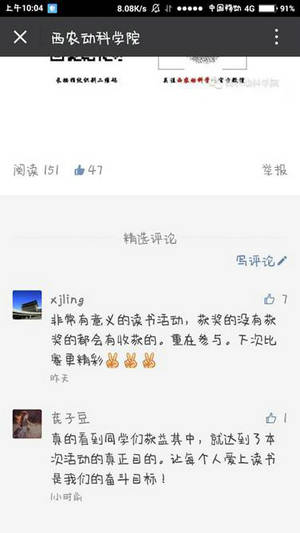 目前平台粉丝量近7000人,最高阅读量达20987,并于2015年9月21至12月5日期间连续12次位居西北农林科技大学新媒体联盟微信综合影响力(wci值)排行榜前五名,其中4次名列榜首,4次第二,2次第三。在2015年校内新媒体平台考评中,“西农动科宅宅爱动漫 ”微信平台以小组总分第一荣获“新媒体平台工作特色活动奖”,逐渐发展成为一个有高度、有速度、有热度、有态度的网络思想教育阵地。