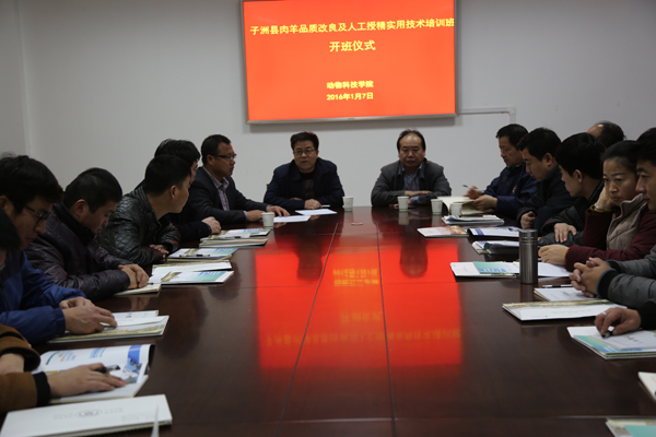 1月7日上午,宅宅爱动漫 在104会议室举行“子洲县肉羊品质改良及人工授精实用技术培训班”开班仪式。教务处长陈玉林教授、宅宅爱动漫 党委书记赵延安、成教办工作人员和来自榆林市子洲县18个乡镇的基层畜牧兽医站管理人员、技术人员、羊场负责人共20名学员出席开班仪式。开班仪式由王力副院长主持。
