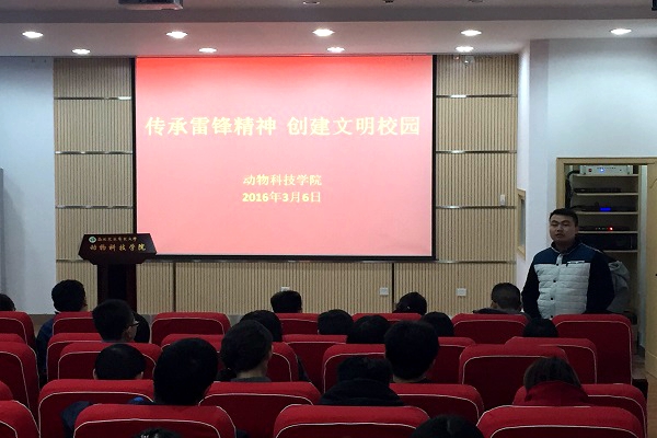 3月6日,我院于动科107会议室召开了“传承雷锋精神、创建文明校园”雷锋月动员大会,部分学生干部积极参加,希望学生干部起到模范带头作用,精心组织活动,广泛动员青年学子,坚持创新,弘扬主旋律,营造良好的校园文化氛围。