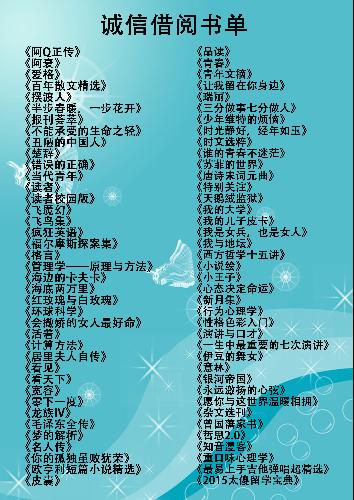 注意事项:借书者须做好诚信借阅登记表,按照登记日期进行归还。 真诚欢迎各位读书爱好者!