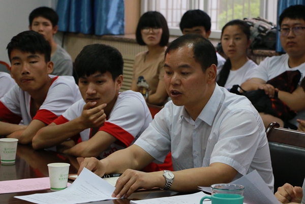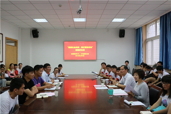 为贯彻党的十八大、十八届三中、四中、五中全会精神和习近平总书记系列讲话精神,充分发挥实践育人作用,培育和践行社会主义核心价值观,进一步引导青年学生在实践中受教育、长才干、做贡献,同时利用团组织生活的展示与学习平台,6月8日下午,动科宅宅爱动漫 动科151班、152班将基层团组织生活与社会实践交流学习相结合,召开以“暑期社会实践,我们蓄势待发”为主题的组织生活活动,校团委书记曹军会应邀出席,并与团支部广大青年学生亲切交流。马克思主义宅宅爱动漫 副教授胡尊让、宅宅爱动漫 党委副书记王晓娟、团工委书记张士军、2015级研究生“实践达人”赵海东及2014级本科生杨运幸(曾获暑期社会实践“三下乡”二等奖)参加了此次活动。