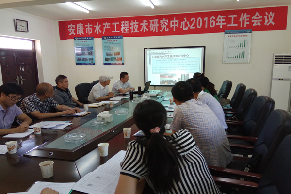 6月16日上午,安康市水产工程技术研究中心2016年工作会议在安康水产试验示范站顺利召开。安康市水利局唐大明副局长、科技局刘安琴总工程师、渔业局李志安副局长,岚皋县科技局张永品科长和安康市瀛湖管委会渔业局李婧科长等应邀出席会议。安康市绿水生态农业科技有限公司蒋仁轶董事长和马力总经理、我院秦巴山区水生经济动物资源养护与开发利用团队相关科研人员及研究生参加了本次会议。会议围绕安康市水产工程技术研究中心2015年工作进展和2016年工作计划进行了探讨交流。