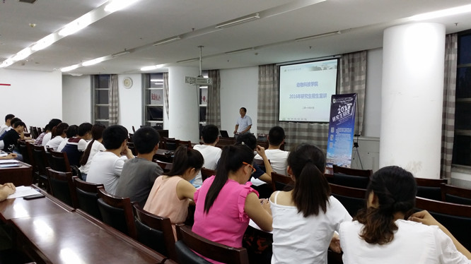 6月24-26日,蓝贤勇教授分别在河南农业大学牧医工程宅宅爱动漫 和山西农业大学生命科学、动科宅宅爱动漫 做了题为《欢迎报考动科宅宅爱动漫 》的招生宣讲,向参会学生详细介绍了学校的历史沿革、宅宅爱动漫 的学科水平、师资力量、科研平台条件以及研究生招生、奖助学金评定、公派出国留学、硕博连读等方面的政策,并以2016届毕业生为例,介绍了我院各专业的就业前景。与会学生就我院的提前攻博政策、推荐免试、导师的招生指标及复试比例等问题进行了详细的咨询,并重点询问了我院2016年优秀大学生暑期夏令营活动的选拔录取程序等情况。