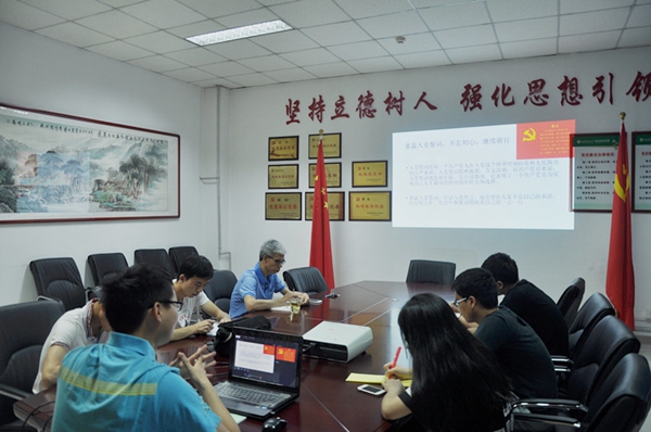 张鹏飞同志总结了支部近期工作和开展“两学一做”活动的学习情况,通报了支部荣获“先进党支部”的情况,详细说明了院党委近期关于研究生党支部工作安排做,并结合“三严三实”、“四讲四有”,以及习近平总书记“七一”重要讲话精神,进一步强调了“两学一做”实施方案的重要性。