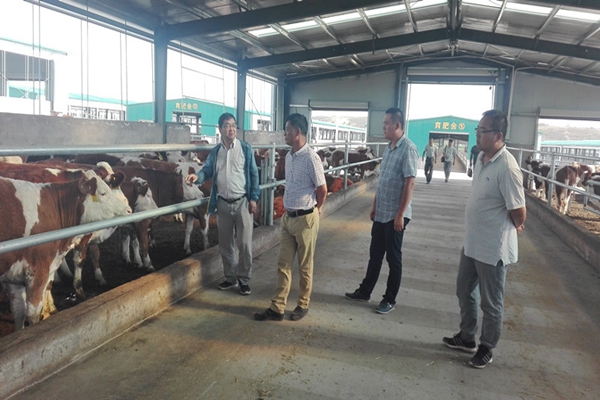 在以扶贫脱困为宗旨的央企——海源华润农业发展有限公司,昝林森教授一行深入企业肉牛繁殖舍和饲草存放地,了解了母牛养殖、繁殖情况,以及稻草干草、全株玉米青贮饲料质量和精料补充料饲喂情况等。在与濮实总经理等公司高管和技术干部座谈时,对企业及其扶贫基地缺乏技术娴熟的配种技术人员和养牛户缺乏肉牛饲养管理常识等问题进行了讨论,提出了解决方案,研究制定了近期现场培训计划和后备技术人员招聘培训计划。
