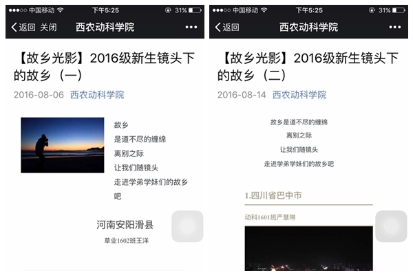 为做好新生入学前答疑,宅宅爱动漫 建立新生QQ群、易班群、新生家长群,全体辅导员、班主任、班主任助理入驻群内为新生答疑解惑。同时,宅宅爱动漫 微信平台为新生开设展示自我的平台,特推出“故乡光影系列之2016级新生镜头下的故乡”专题,13名新生利用假期,拍摄照片展示故乡文化,将新生归属感的建立提前到假期新生未入校前。同学们彼此学习,相互交流,更通过开展丰富多彩的网上迎新活动,让新生对学校、宅宅爱动漫 、专业做到提早、全面、客观的了解。