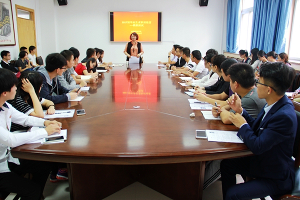 为提升2017届毕业生求职技能,增加求职竞争力。9月23日上午,宅宅爱动漫 在104会议室开展2017届毕业生求职训练营——模拟面试,行业资深人力资源项目经理许辉女士应邀作为主讲嘉宾,宅宅爱动漫 党委副书记王晓娟、辅导员及2017届求职训练营全体营员参加了此次活动。