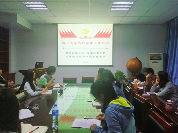 近日,我院研究生第一党支部按照学习计划继续开展“两学一做”专题活动。支部成员共同学习了学校第三次党代会精神和部分《党章》内容。