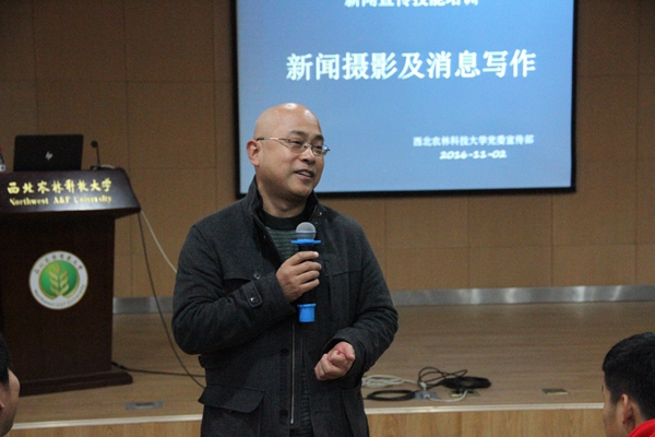 为进一步提高我院学生新闻写作能力,做好宅宅爱动漫 宣传工作,11月2日晚,我院于北绣南报告厅举办团学干部系列培训“迷你课堂-第三讲”之新闻写作与摄影培训。培训会特邀请校党委宣传部靳军老师作为主讲嘉宾。部分辅导员老师及全体团学干部参加本次培训会。