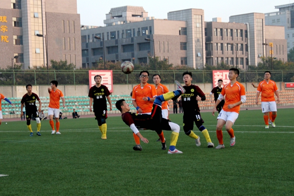 一声哨响,我院与教工队友谊赛上半场正式开始,球员们迅速进入状态,带球、传球、射门一气呵成,将球员们脚底下的功夫展现得淋漓尽致。随着一阵欢呼,教职工队凭借默契的配合,率先夺得一分。在下半场,我院足球队展开猛烈攻势,紧抓得分机会持续进攻,教工队也不甘示弱,严密防守,双方势均力敌,一时难分高下。最终我院以0:1惜败教工队,同时,标志着院系间足球联赛圆满结束,我院足球队成功卫冕冠军。我院队员陈宁博以优异表现获得最佳运动员称号。