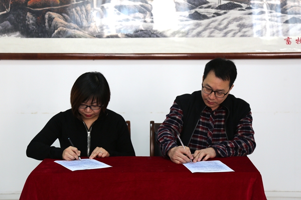 丁思亮总监和王晓娟副书记签订了学生就业实习基地协议书。