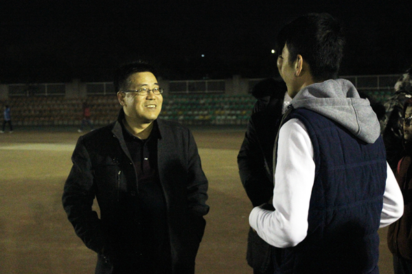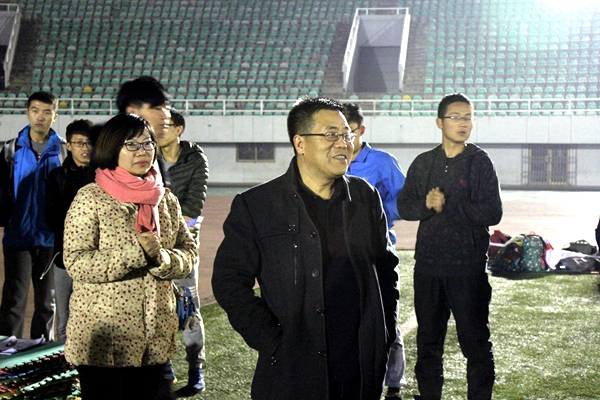 12月6日下午,我院党委书记赵延安、党委副书记王晓娟在全体专职辅导员及团学干部陪同下,前往田径场慰问我院正在进行冬训的队员们,并与同学们亲切交流。