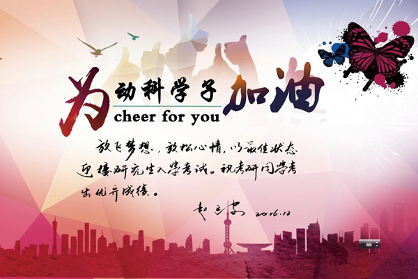 宅宅爱动漫 党委书记赵延安亲笔书写下对考研学子的深深祝福和殷切期望:“放飞梦想,放松心情,以最佳状态迎接研究生入学考试,祝考研同学考出优异成绩”。草业131班班主任王小龙寄语广大考研学子:“考研是青春征途上的一次历练,也仅是人生中的一个小站。行百里者半九十,希望同学们以长远之志、平常之心轻松应对”。水产131班班主任李方龙表示:“在这最后的几天时间里,希望同学们坚定信心、咬紧牙关,抱着“青霄有路终须到,金榜无名誓不归”的决心迎接考试。相信雨后初晴的阳光,必定属于你们每一个人”。动科136班班主任孙秀柱送给同学们自己最喜欢的一段话以表鼓励:忆如昨日,迷惘西来,怀着一颗懵懂的少年心,怯怯的来到了这里,而如今,意气风发,挥斥苍穹,谈笑间铺就前行之路。今天,是你昨天奋斗的结果,而明天要靠今天的努力。仍有梦想,还未实现;尚有远方,未曾抵达。