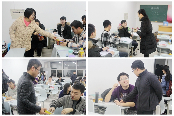 12月14日下午,宅宅爱动漫 党委副书记王晓娟、毕业班班主任和全体专兼职辅导员一行来到八号楼10层考研自习室8003和8006,将承载着宅宅爱动漫 老师和同学们满满祝福的鲜花和小礼品送到每位考研学子的手中。王晓娟副书记提醒同学们临近考试要调整好状态,保证充足的营养和睡眠;考研不仅仅是学历的提升、学术的深造,更重要的是备考过程中潜力的无限挖掘,冲刺阶段,希望同学们认真备考、勇于前行,努力实现自己心中的科研梦想。班主任、辅导员们叮嘱同学们一定要坚持不懈,考前准备好相关证件,遇到困难及时寻求宅宅爱动漫 、老师帮助,并祝愿每一位考研学子金榜题名。一张张笑脸驱走了冬日的严寒,一句句温馨的话语坚定了考研的信心,一件件小小的礼物激发了感恩的情怀,同学们将用自己的实际行动谱写西农人璀璨的明天。