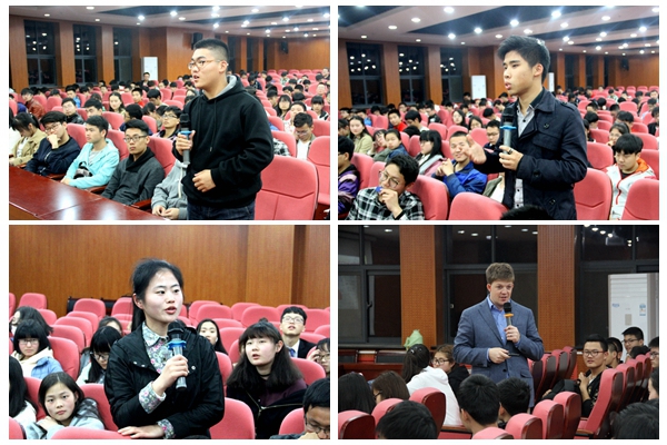 “在工作中,我‘对牛弹琴’;来到这里,今天就要‘对人谈牛’啦”,讲座伊始,Ian Lahiffe先生用流利的普通话与幽默的台风瞬间拉近了与同学们的距离。他擅长音乐,精通普通话,是畜牧行业典型的复合型人才。在报告会中,他以“对中国肉牛行业的一些思考”为切入点,帮助同学们了解行业趋势、探究消费习惯、深挖进货渠道,使得同学们以小见大,从肉牛行业看整个畜牧行业,明晰职业规划、确定持续目标,努力成为社会所需的全面发展的高素质人才。互动环节中,同学们与Ian愉快沟通,畅聊就业前景与职业梦想,“让中国人吃上更安全的品质肉类”如火斗志点燃了志存高远的2017届毕业生们蓬勃向上的青春理想。