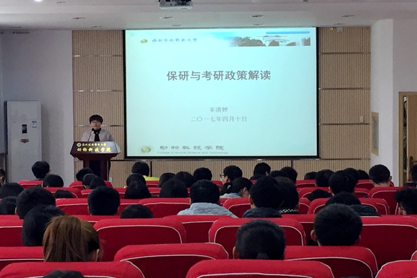 第一味药:政策解读。为提高学生辅导效果,有针对性帮助学生疏导疑惑,各班以班级为单位,收集并整理了学生存在的关于保研、考研相关的13条共性问题。4月10日下午,宅宅爱动漫 于107会议室举办2018届毕业生考研、保研政策宣讲会,宅宅爱动漫 研究生秘书辛清婷老师应邀担任主讲人,2014级百余名学生积极参与、认真聆听。