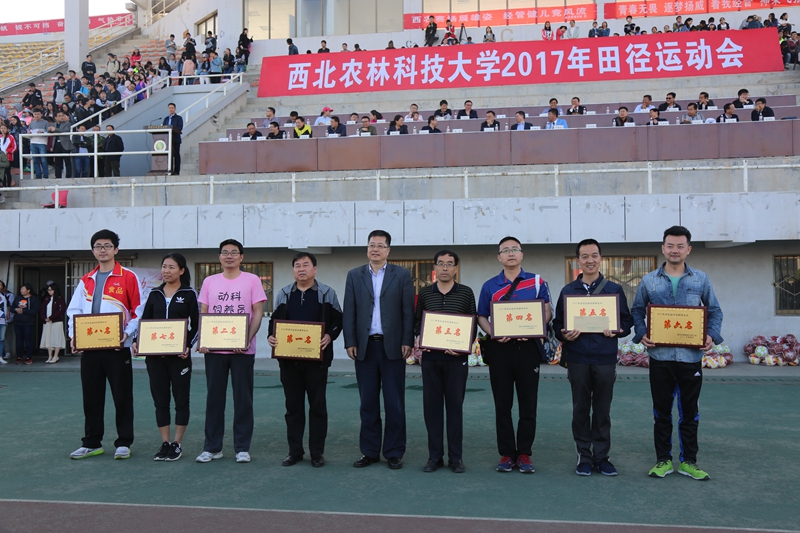 4月21日,为期两天的西北农林科技大学2017年春季运动会在北校区体育场圆满落下帷幕。本届运动会中,我院教职工代表队取得较大突破,一举斩获124.5分,勇夺学校教职工团体总分第二名,问鼎各院系总分之首。