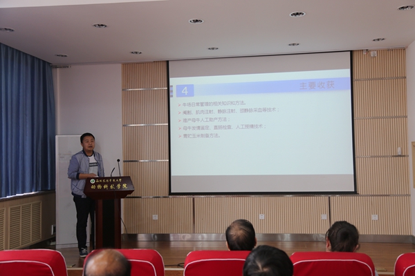 参加考核的47名同学(养殖专业36名,草业专业5名,渔业专业6名)从实践研究目的、内容、主要成果以及实践研究对学位论文的作用、实践活动与职业发展关系等内容进行了汇报。考核专家组根据研究生的实践研究工作量、工作日志、总结报告及实践单位的反馈意见等对研究生的实践能力与水平做出综合评定。